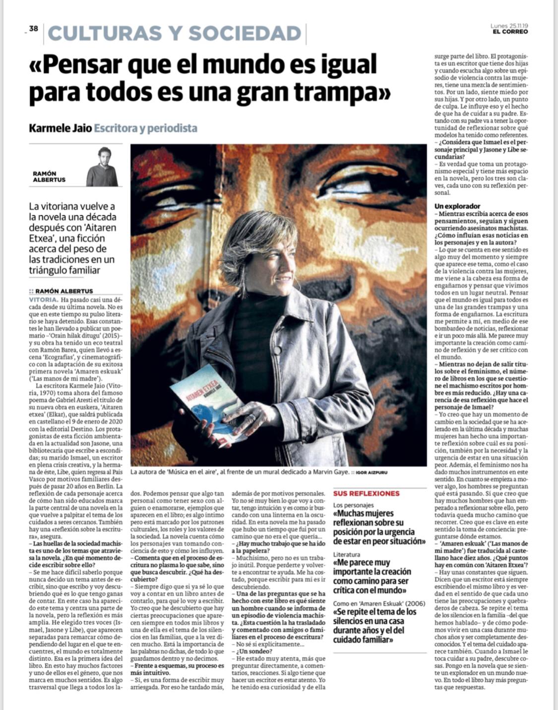 Algunas recomendaciones culturales de la escritora Karmele Jaio