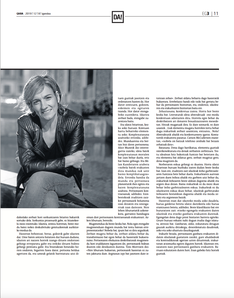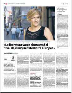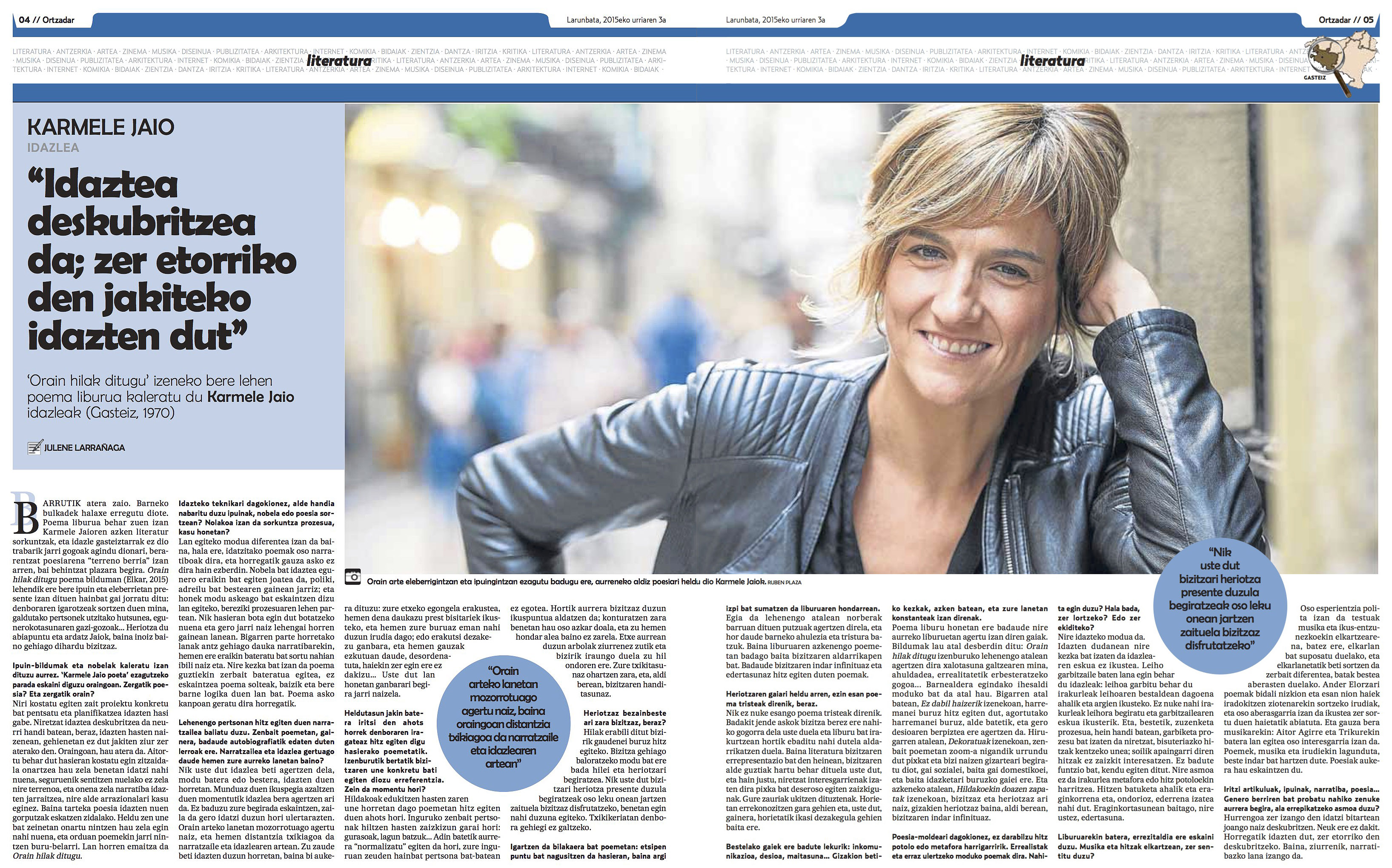 Karmele Jaio:”Uste dut ur handitan sartzen ez bazara, ez duela, agian, idaztea merezi”