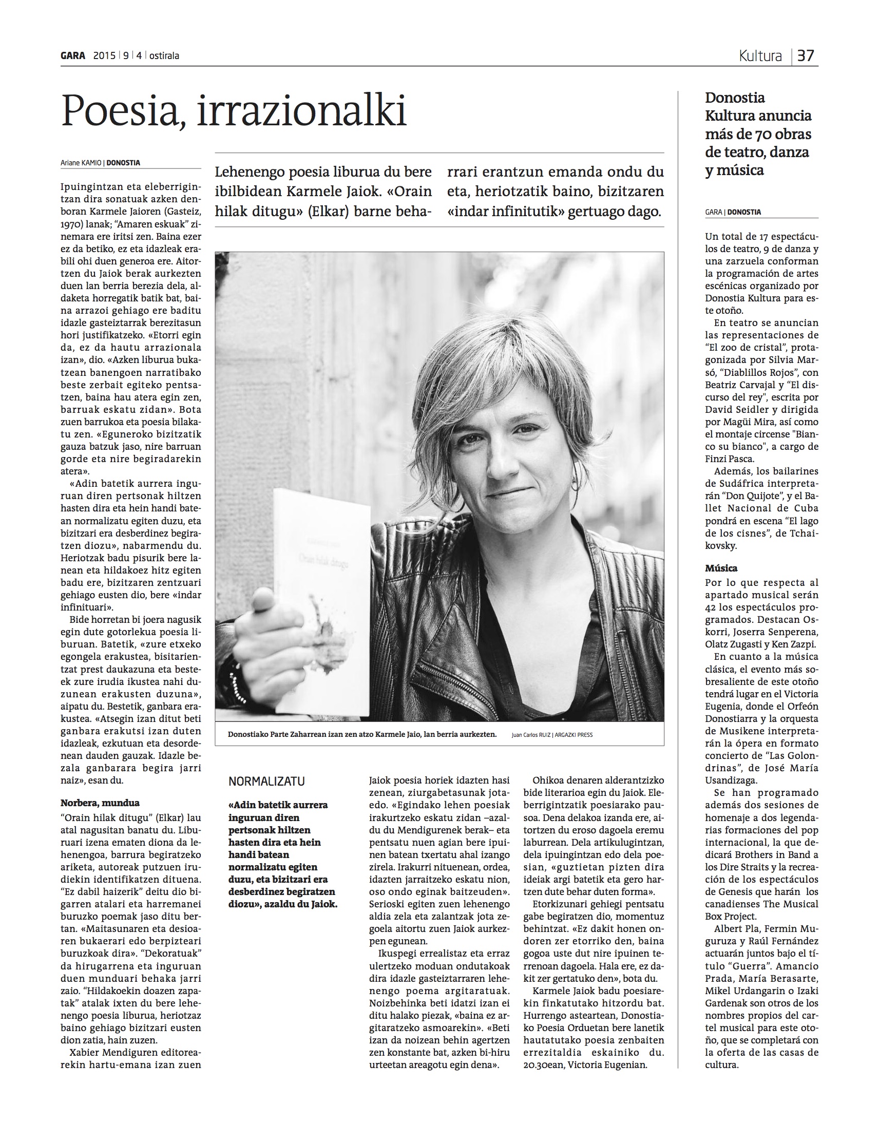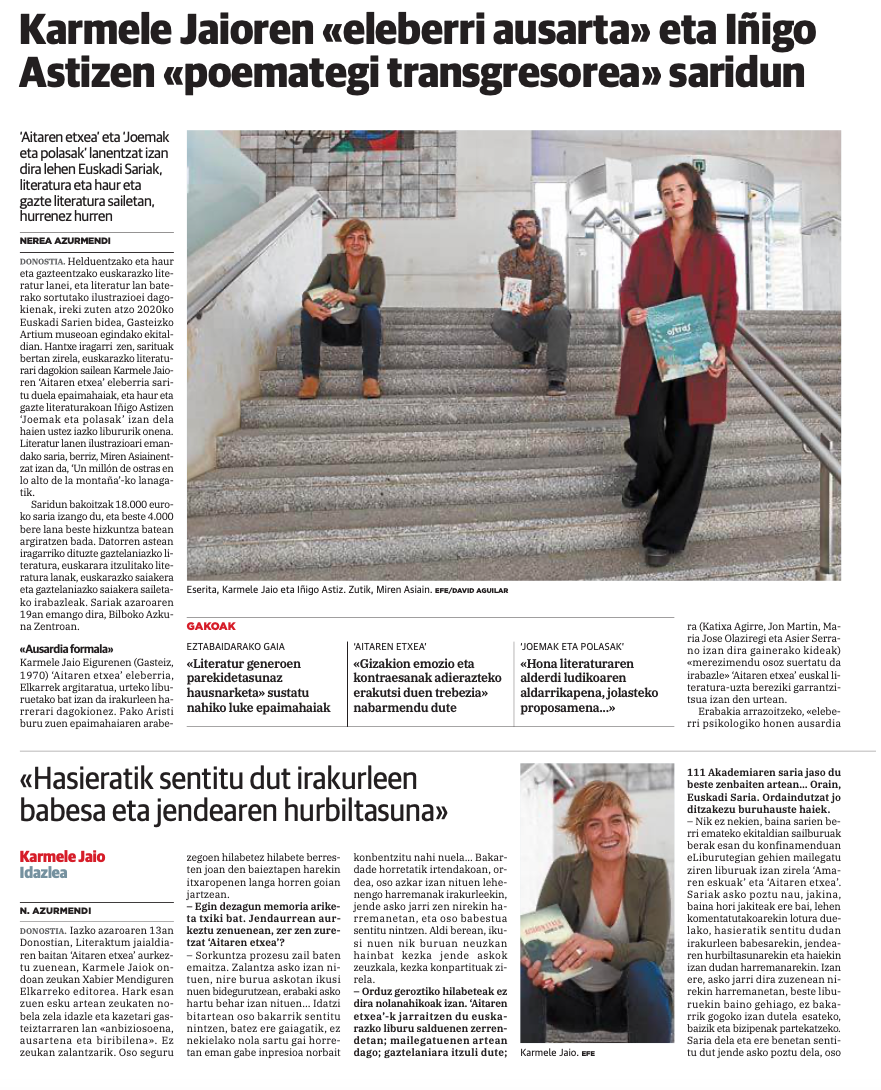 Algunas recomendaciones culturales de la escritora Karmele Jaio